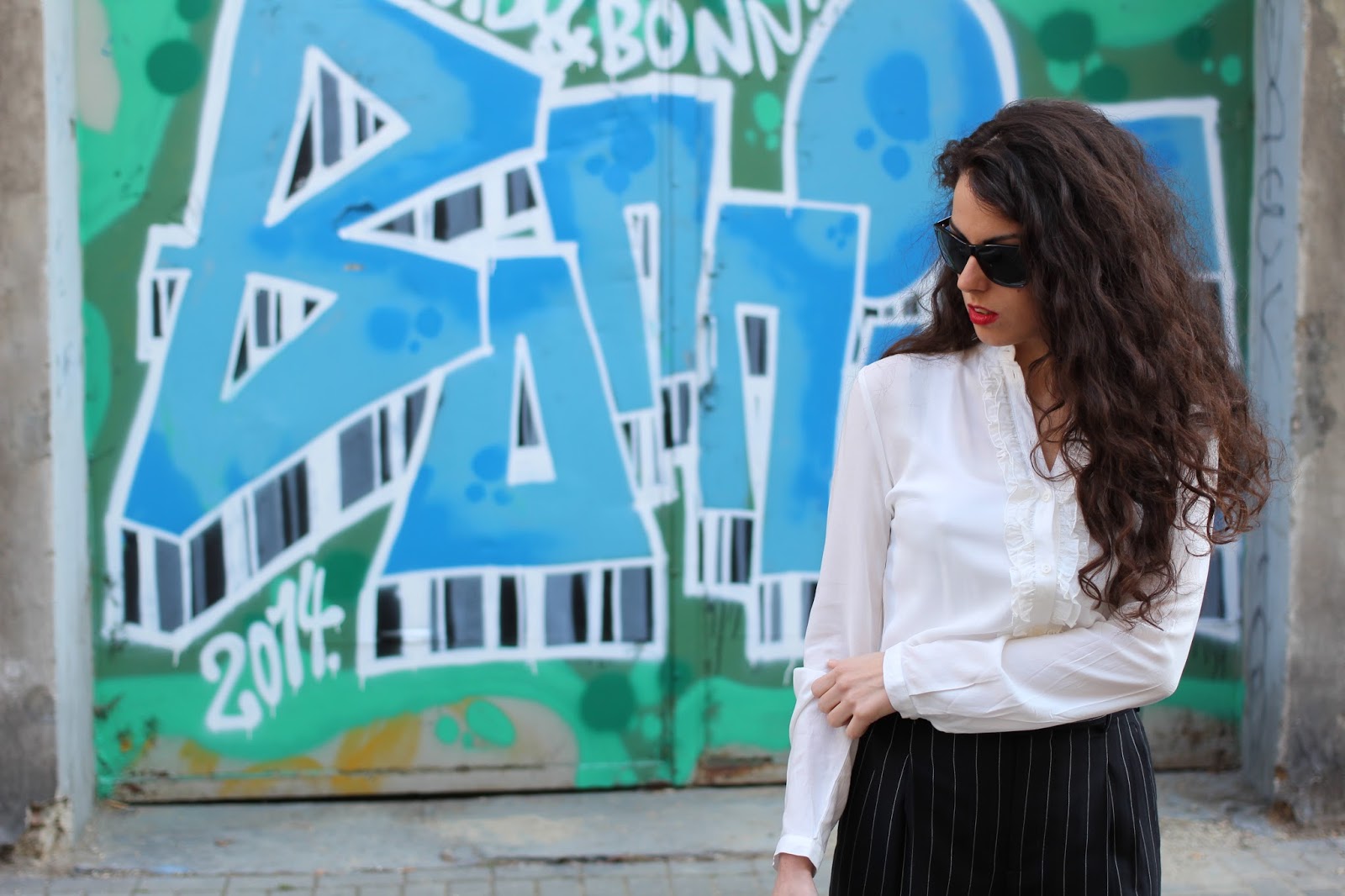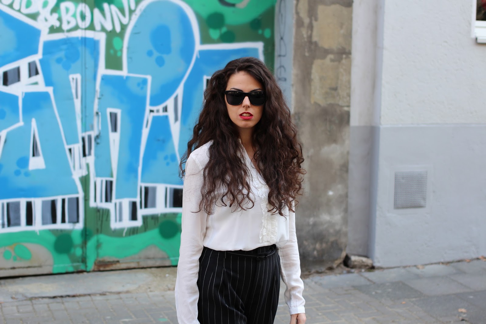 Falls euch das Outfit bekannt vorkommt: Es ist eines meiner ersten Outfits, was ich euch heute nochmal präsentieren möchte. Es ist chic und doch gemütlich! Hier seht ihr eine hochgeschnittene und weite Hose. Dazu habe ich eine ganz klassische weiße Bluse kombiniert. Schwarz und weiß, was immer geht. 🙂