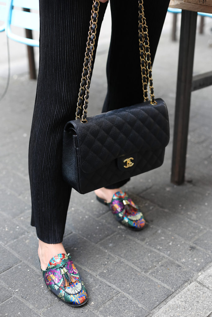 Noch vor ein paar Jahren hätte ich nie gedacht, dass ich sowas mal sage oder schreibe, aber wenn ich mir unsicher bin, welche Tasche ich nehmen soll oder welche passen könnte, dann nehme ich immer gerne meine Chanel. 🙂 Ob zu einem Streetstyle-Look, einem Kleid oder fürs Business. Für mich passt sie so gut wie immer. Damals habe ich mich für die Flap Bag in der Größe Jumbo entschieden, weil ich echt immer viel mit mir rumtrage… ihr kennt das sicher, oder? Die Entscheidung für diese wunderschöne Tasche habe ich bis heute nicht bereut. 🙂